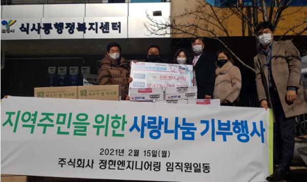 파주시 문화로 위치한 ㈜정현엔지니어링 관계자는 “이번 기부가 코로나19의 장기화로 인한 경제적 어려움을 겪고 있는 저소득층에게 도움이 되었으면 좋겠다”며 “앞으로도 지역사회와 함께 성장하는 기업이 되도록 노력하겠다”고 소감을 밝혔다.