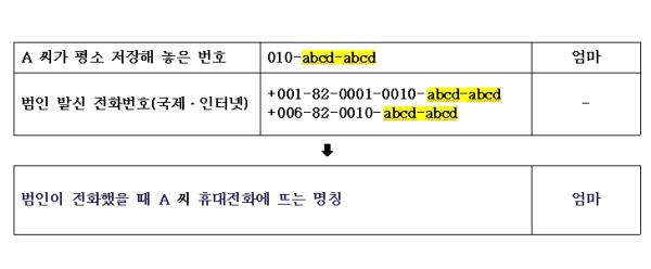 이러한 신종 수법은 휴대전화 번호 뒷부분 몇 개 자리가 일치하면 국제전화 등의 다른 번호라도 평소 저장해 놓은 대상자라고 화면에 나타나는 점을 악용한 것으로 해당 가족을 해코지하겠다고 협박하기 때문에 절박한 심정이 되어 속기 쉬우니 평소에 이 내용을 알고 있어야 함을 강조했다.