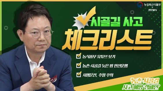 [한국쇼핑몰뉴스, 최영진기자] 농림축산식품부는 여름 휴가철을 앞두고 한문철 변호사가 소개하는 ‘농촌·시골길 사고 예방 캠페인’ 영상 3부작을 공개한다. 해당 영상은 농식품부 유튜브 채널을 통해 7월 22일부터 매주 금요일마다 확인할 수 있다.
