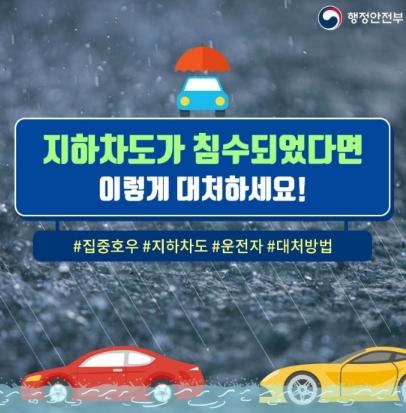 - 집중호우에 잠기기 쉬운 지하차도는 피하고 차량 침수 시 대처 방법 꼭 기억하세요!