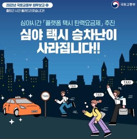 1. 심야 택시난 해소를 위한 「플랫폼 택시 탄력요금제」를 추진합니다.