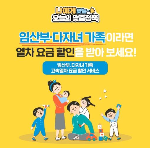 [한국쇼핑몰뉴스, 최영진기자] 임산부·다자녀 가족이라면 열차 요금 할인을 받아 보세요!
