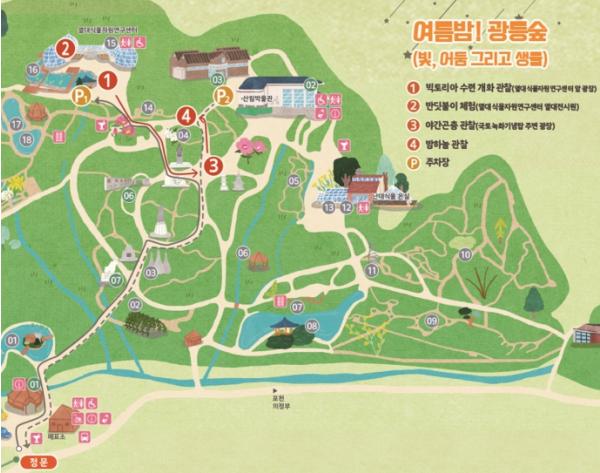 [한국쇼핑몰뉴스, 최영진기자] 산림청 국립수목원은 온 가족이 함께 특별한 밤 산책을 즐길 수 있는 '여름밤! 광릉숲(빛, 어둠 그리고 생물)'프로그램을 오는 8월 23일, 24일 이틀간 진행한다.