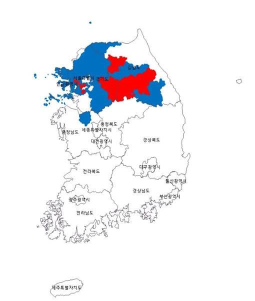 경보발령 12개지역은 서울시(중구, 관악구), 인천광역시(계양구), 경기도(의정부시, 부천시, 광명시, 군포시, 여주시, 양평군), 강원도(춘천시, 원주시, 횡성군, 평창군)이고 주의보 발령 39개 지역은 서울시(도봉구, 양천구, 강서구, 구로구, 금천구, 동작구, 서초구, 송파구), 인천광역시(중구, 미추홀구, 연수구, 부평구, 서구, 강화군, 옹진군), 경기도(의정부시, 동두천시, 안산시, 고양시, 구리시, 남양주시, 시흥시, 의왕시, 하남시, 용인시, 파주시, 이천시, 안성시, 김포시, 광주시, 양주시, 포천시, 연천군, 가평군), 강원도(홍천군, 영월군, 정선군, 철원군), 충청남도(아산시)이다.