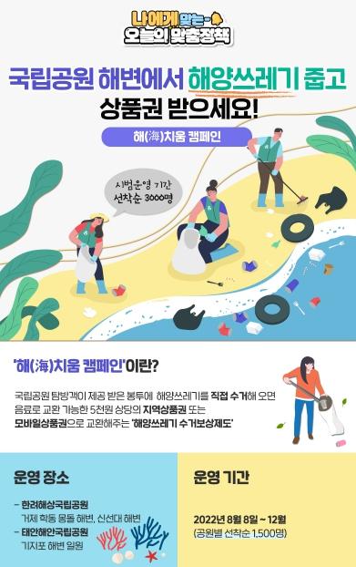 국립공원 탐방객이 제공 받은 봉투에 해양쓰레기를 직접 수거해 오면, 음료로 교환 가능한 5천원 상당의 지역상품권 또는 모바일상품권으로 교환해주는 ‘해양쓰레기 수거보상제도’입니다.