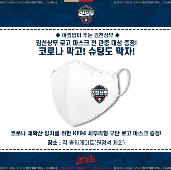 김천은 서울전 홈경기에서 코로나19 재 확산 방지에 동참하는 일환으로 경기장을 찾은 전 관중에게 KF94 마스크를 증정한다.