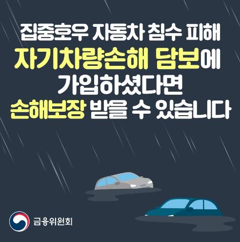 [한국쇼핑몰뉴스, 최영진기자] 자동차보험 「자기차량손해 담보」에 가입한 경우 차량 침수 손해를 보장받을 수 있습니다.