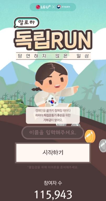LG유플러스에서 하와이 독립운동을 소재로 한 게임 콘텐츠를 제공, 참여자 3만 7천명을 달성하면 3천만원을 지원키로 했다.