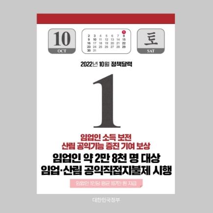 10월 1일부터 산림과 숲의 공익기능 증진을 위한 규정을 준수하고 산림을 보호·관리하는 의무사항을 이행한 임업인을 대상으로 임업·산림 공익직접지불제(이하 임업직불제)를 시행합니다.
