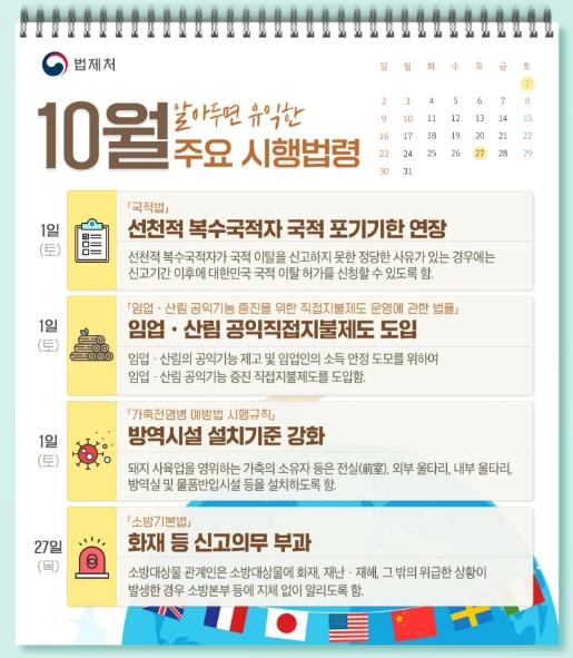 [한국쇼핑몰뉴스, 최영진기자] 알아두면 유익한 10월 주요 시행법령, 어떻게 달라질까요?