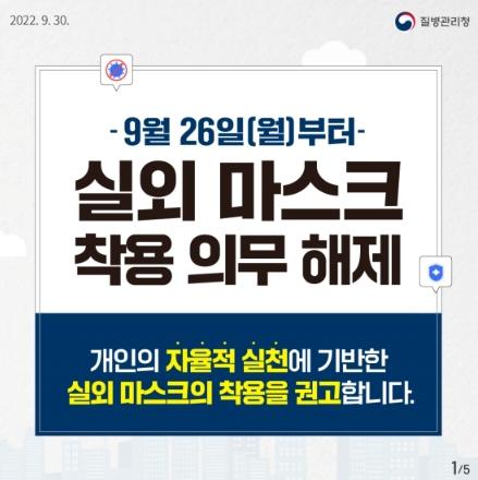 ◆ 실외 마스크 착용 의무 해제