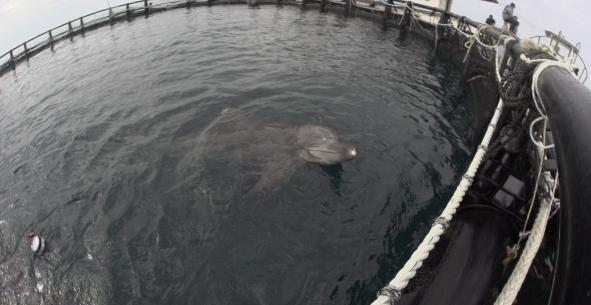 ‘비봉이’는 지난 8월 방류 계획이 수립된 이후, 제주도 서귀포시 대정읍 앞바다에 설치된 해상가두리로 옮겨와 현장적응훈련을 잘 수행해왔다. 빠른 조류와 높은 파도 등 제주도 연안의 야생 바다 환경에 적응했고, 살아있는 물고기를 사냥하는 데에도 익숙해졌다.