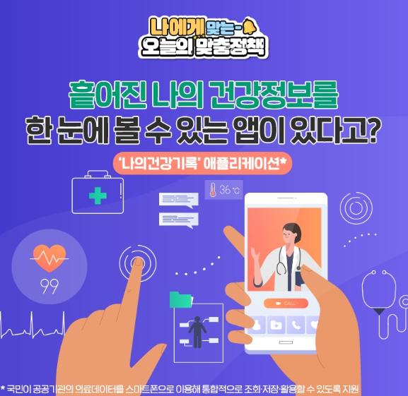 ‘나의건강기록’ 애플리케이션은 국민이 공공기관의 의료데이터를 스마트폰을 이용해 통합적으로 조회·저장·활용할 수 있도록 지원하고 있습니다