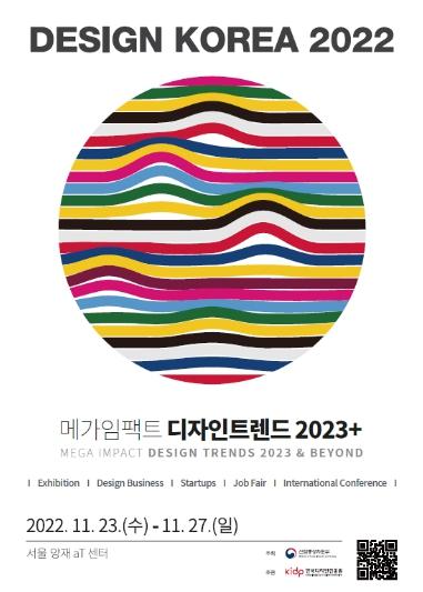 [한국쇼핑몰뉴스, 최영진기자] 산업통상자원부가 주최하고 한국디자인진흥원(원장 윤상흠)이 주관하는 국내 최대의 디자인산업 전시행사인「디자인코리아 2022」가 11월 23일부터 27일까지 5일간 서울 aT센터(서울 양재, 한국농수산식품유통공사 부속 종합 전시 컨벤션센터)에서 개최된다.