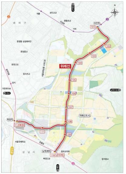 「위례선 도시철도 건설사업」은 위례신도시 광역교통개선대책의 일환으로 총 사업비 2,614억원을 투입하여 연장 5.4km, 정거장 12개소(환승역 3개소)를노면전차(트램)로 연결하는 친환경 신교통사업이다