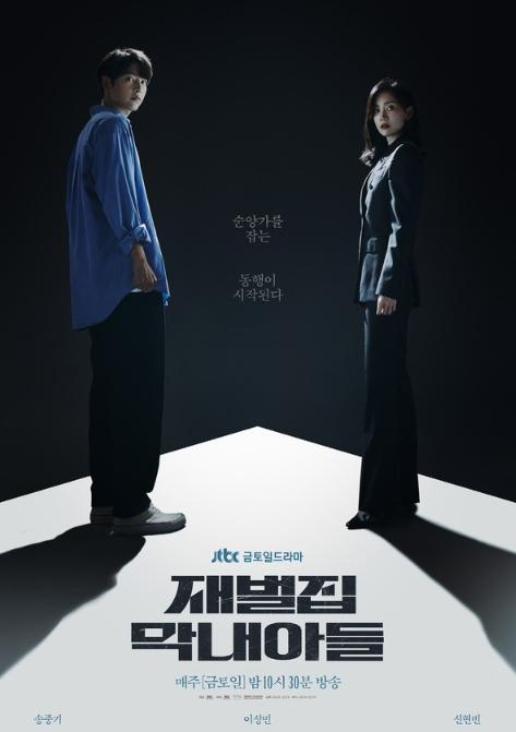 JTBC 금토일드라마 ‘재벌집 막내아들’(연출 정대윤, 김상호, 극본 김태희, 장은재, 제작 SLL 래몽래인 재벌집막내아들문화산업전문회사) 측은 8일, 2막의 시작과 함께 특별한 공조를 예고한 진도준(송중기 분)과 서민영(신현빈 분)의 스페셜 포스터를 깜짝 공개했다.