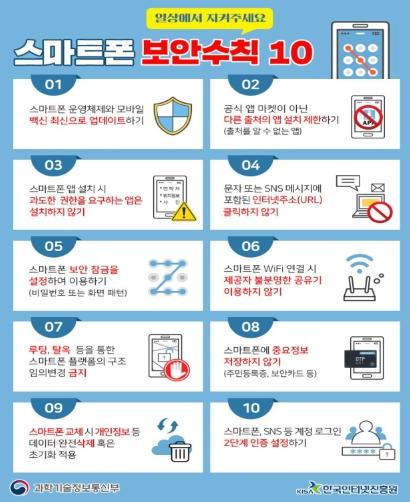 방송통신위원회는 이동통신3사(SKT, KT, LGU+), 한국정보통신진흥협회(KAIT)와 협력하여 1월 16일부터 각 통신사 명의로 가입자에게 '스미싱 문자 주의 안내'문자메시지를 순차 발송할 예정이다.