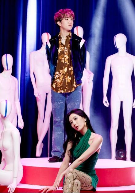 티저는 선미와 비오가 한 무대에서 등을 기댄 장면으로 시작된다. 두 사람은 마네킹으로 둘러싸인 독특한 분위기의 세트에서 가볍게 몸을 흔들거나 포즈를 취하며 무대를 이어간다.
