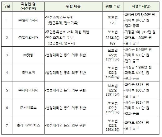이외에도 이용자의 본인확인을 위해 수집했던 신분증의 주민등록번호 등 고유식별정보를 암호화 조치를 하지 않고 저장한 사실이 추가로 확인되어 총 과징금 6억 8,496만 원과 과태료 2,040만 원이 부과됐다.
