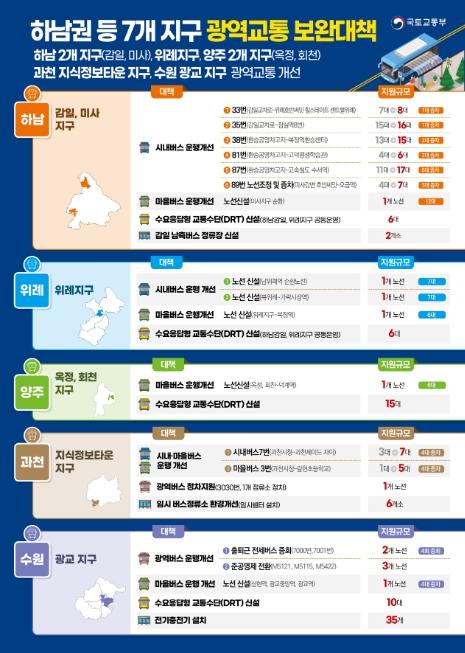 특히, 지난 2월 대광위는 위 지구에서 서울시로 진입하는 노선에 대해 서울시와 긴밀한 협의를 거쳐 합의된 시내?마을버스 노선 신설 및 증차 사항도 이번 대책에 반영되어 추진될 예정이다.