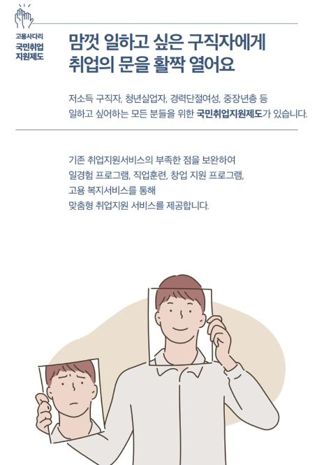 [한국쇼핑몰뉴스, 최영진기자] 저소득 구직자, 청년실업자, 경력단절여성, 중장년층 등 일하고 싶어하는 모든 분들을 위한 국민취업지원제도가 있습니다.