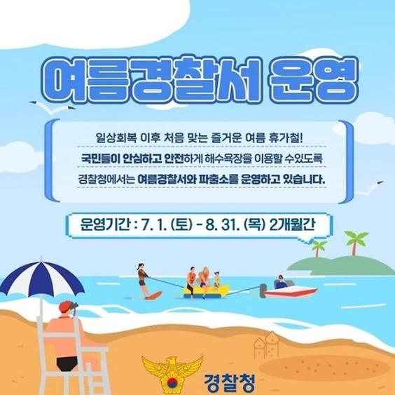 국민들이 안심하고 안전하게 해수욕장을 이용할 수있도록 경찰청에서는 여름경찰서와 파출소를 운영하고 있습니다.