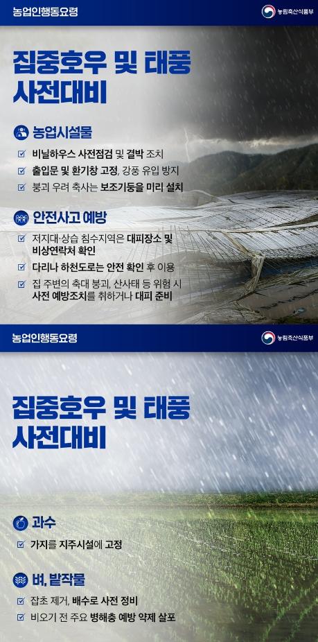 [한국쇼핑몰뉴스, 최영진기자] 집중호우 및 태풍 사전대비 농업인 행동요령