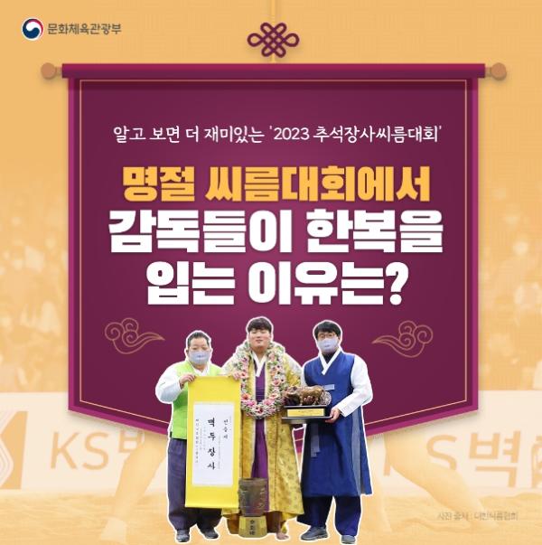 ‘2023 추석장사씨름대회’가 9월 12일(화)~17일(일) 수원체육관 에서 열립니다. 경기장에서, 혹은 TV 중계로 흥미진진 씨름을 만나기 전 알아두면 좋을 초간단 씨름 상식, 함께 보고 가시죠!