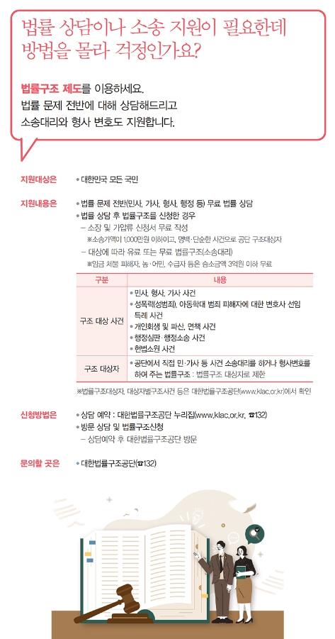 · 상담 예약 : 대한법률구조공단 누리집(☎132)
