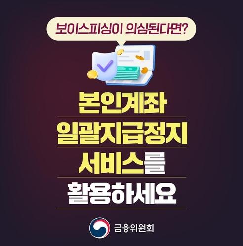 [한국쇼핑몰뉴스, 최영진기자] 보이스피싱이 의심된다면, ‘본인계좌 일괄지급정지’ 서비스를 활용하세요!