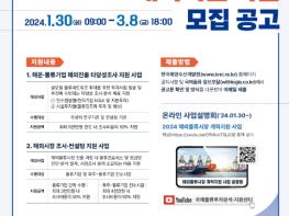 [한국쇼핑몰뉴스, 최영진기자] 해양수산부는 1월 30일부터 3월 8일까지'2024년도 해외물류시장 개척지원 사업'지원 대상기업을 모집한다.