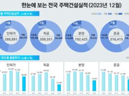 인허가는 12월 94,420호로 전월(20,553호) 대비 359.4% 증가했고,12월 누계(1~12월) 기준 388,891호로 집계됐다.