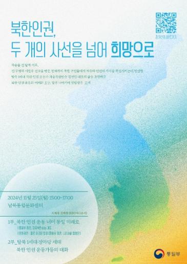 [한국쇼핑몰뉴스, 최영진기자] 통일부는 11월 25일 오후 3시부터 통일부 남북통합문화센터 대강당(서울시 강서구)에서 ‘북한 인권, 두 개의 사선을 넘어 희망으로’를 주제로 토크콘서트를 개최한다.